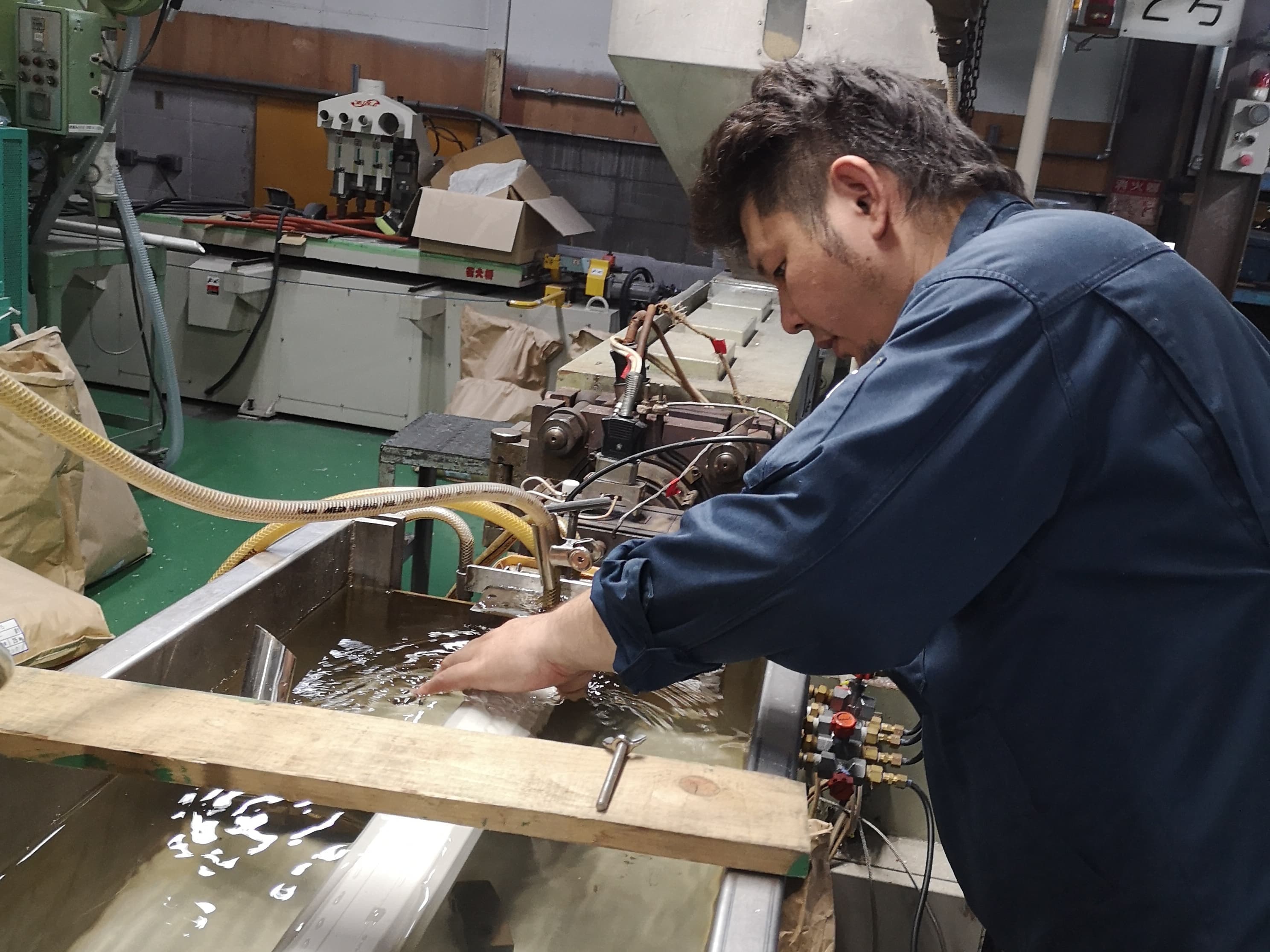 当社はプラスチック製品の製造・加工をおこなっております。原料の製造部門では、自社による着色加工。成形部門では、射出成形・異形押出成形、そして金型の設計・製作。それにより、原料の着色から成形・組立までを一貫生産することができます。扱っている樹脂はABS、PP、PS、PC、PVCをはじめ、様々な樹脂を取り扱っております。そして、自社で原料を製造できる強みを活かしプラスチックのリサイクル部門にも力を入れています。